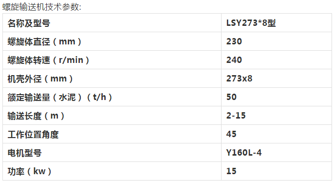 螺旋輸送機主要用于混凝土攪拌站輸送水泥,粉煤灰物料,還適用于化工、冶金、糧倉加工、倉儲及其它適用螺旋輸送機的場所,該機螺旋體直徑小,轉速高,輸送量大,精度高,輸送工況佳。驅動裝置采用齒輪減速機,具有轉矩大,噪音低,不滲油,壽命長,輸送外殼采用優質無縫管,法蘭連接。整體剛性好,承載能力大,在輸送時,無論是水平輸送,還是大傾角均可連續輸送,且可隨意選擇工作位置和工作狀態,拆裝修理方便,安全可靠,是新一代理想的環保產品。